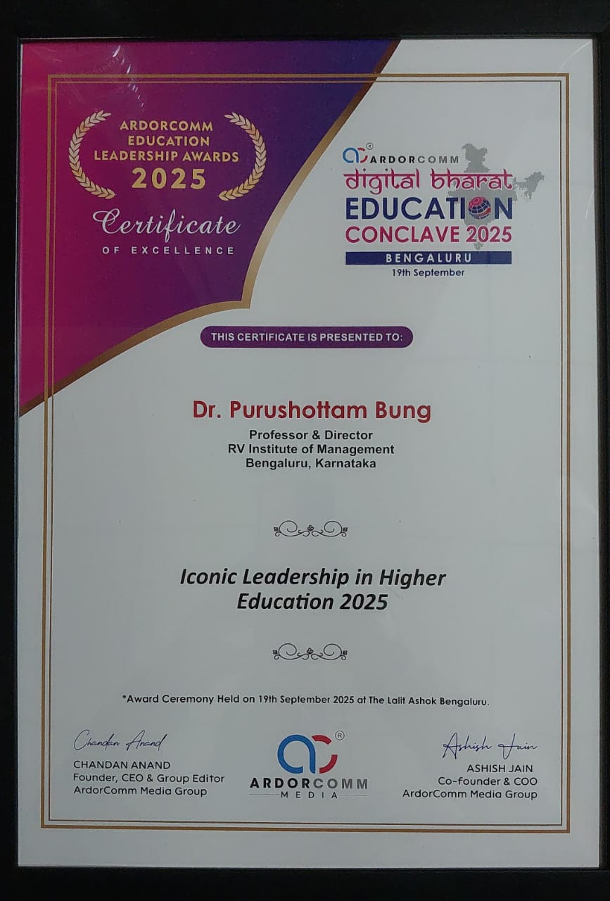 RSST(Rashtreeya Sikshana Samithi Trust) to which RVIM belongs was established in 1940. It is recognized as RV Group of Institution( Rashtreeya Vidyalaya) is one of the fastest growing group of Institutions in the state of Karnataka. It has presence in virtually every field of academics and research. As on date, RV Group has under its ambit over 27 institutions, in which 20,000 plus students from all over India and abroad are pursuing their dream education, RV Engineering College, DAPM RV Dental College, RV School of Architecture, RV Aster Super Specialty Hospital, RV Teachers College, Bengaluru are some of the flagship Institutions under RV Group. We welcome you all to the world of RV Institute of Management, located in Jayanagar, the beautiful and central suburb of Silicon Valley of India, i.e Benagalore also known as IT capital of India. The Institute is well connected to city even through metro rail network Our dedicated and experienced faulty with industry background; best in class infrastructure; student focus; intense placements support and robust industry and institutional linkages ( domestic and international) help us in accomplishing our mission and vision. We believe in holistic development of students as reflected in our motto “ We prepare our students for life”. In May 2019 RVIM was re-accredited by NAAC with ‘A+’ Grade & is certified by QS I-Gauge, a global accreditation agency for E-Readiness in 2020 and Diamond rating in the subject rating category in 2022.